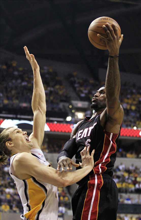 熱火球星詹姆斯狂轟40分18籃板9助攻的準三雙成績,同時還有2搶斷和2蓋帽;韋德在上場比賽的低迷表現過后本場比賽恢復神勇,砍下30分9籃板6助攻1搶斷2蓋帽;哈斯勒姆14分4籃板,錢莫斯8分。步行者球星格蘭杰拿到20分5籃板3助攻,喬治13分6籃板5助攻3搶斷,希伯特10分9籃板3蓋帽,韋斯特8分6籃板,克里森貢獻16分。