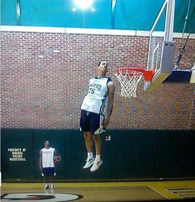 北京時間10月30日 根據《DIME》消息 還記得“魔獸”霍華德親吻籃筐的照片么?如果你還認為這已經是NBA球員的極限時,那你就大錯特錯了,如今杰拉德-格林向人們詮釋了什么才是真正的親吻籃筐。在上周末步行者隊的隊內訓練中,格林再一次用彈跳征服了隊友,只見他縱身躍起親吻籃筐,整個腦袋已經超過籃筐。親眼目睹格林這一跳的隊友,除了驚嘆剩下的還是驚嘆。在NBA中,天空是沒有極限的。