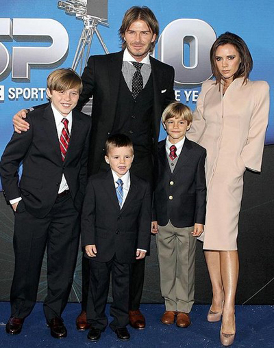 貝克漢姆是英格蘭乃至世界足壇永遠的偶像,維多利亞在美國紐約成為知名時裝設計師,三個兒子青春帥氣,女兒小7乖巧可愛,二公子羅密歐最近接拍Burberry廣告,小貝一家穿著時尚得體,舉止優雅大方,絕對名門望族。英國網站Tvbet.co.uk評選他們為全球最時尚家庭也在情理之中。
