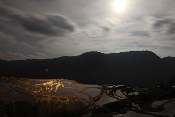 2012年5月7日,月亮光下的月亮山梯田。(黃秀福 攝)