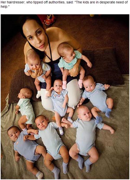 報道稱,在生育8胞胎之前,蘇爾曼就曾通過試管受精生過6個孩子。面對養育14個孩子的巨大壓力,現年36歲的蘇爾曼想盡了一切辦法,但仍無法讓孩子過上溫飽生活。社區工作人員在到其家中探望后向媒體透露,無論是家里,還是庭院,到處都是一片狼藉。男孩子們穿著女孩子的衣服,不少孩子因為吃不飽飯而營養不良,蘇爾曼根本無力照顧他們。