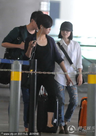 騰訊娛樂訊 上海,近日,董潔出現在虹橋機場。當天,她素顏現身,穿著白色襯衫、破爛牛仔褲,戴著帽子潮范兒十足。