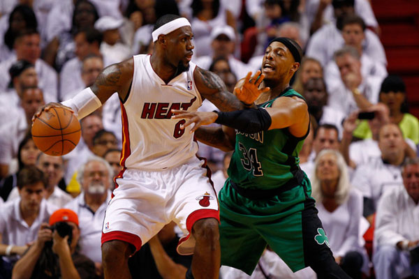 搜狐體育訊 北京時(shí)間5月29日,熱火主場(chǎng)93-79輕取凱爾特人,喜迎東區(qū)決賽開門紅。詹姆斯表現(xiàn)神勇,全場(chǎng)砍下32分13板3次助攻3次蓋帽,韋德22分7次助攻。皮爾斯和雷-阿倫手感低迷,加內(nèi)特獨(dú)木難支,綠軍遺憾落敗。