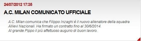 下午5點,米蘭U16青年隊的前鋒邁克爾-法布羅在他自己的facebook主頁更新了一條狀態說“下賽季我將榮信地接受皮波 因扎吉的指導,他是激勵我成長的球員。”這時已經可以確定,因扎吉已經決定退役,留在米蘭擔任教練。