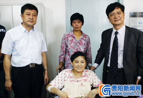 發(fā)完通知書后,鄭強(qiáng)送肖麗回病房。鄭強(qiáng)說,肖麗這種頑強(qiáng)拼搏的精神,值得每一個(gè)人學(xué)習(xí)。“貴大有了肖麗,貴大甚至可以與名校并駕齊驅(qū)了,因?yàn)槊V辉谟趯憥灼撐淖鰩讉(gè)課題,而在于校園里有這樣的精神和情感,這樣的大學(xué),值得所有的學(xué)子來讀。肖麗為貴大學(xué)子,構(gòu)筑了精神高地。”