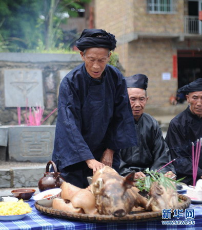 7月29日,在貴州三都縣水各鄉,德高望重的大祭司在卯節上主持祭祀