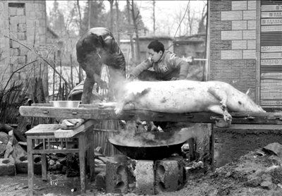 很多居民都在家中宰豬。本報(bào)記者陶冉攝