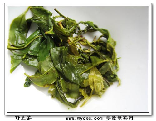 我查了一下資料,這些茶的生長地海拔900-1000多米。這些完全處于野生狀態下的茶樹,終年與闊葉林、野花等植物相擁相伴、和諧生長。但因為這些野生茶生長的環境初期汽溫低,來得慢,等到四月底五月初葉子才舒展開,這時候汽溫又高,茶葉生長快,葉子變得厚大,而且沒有茶園的葉子那么柔嫩,所以,加工起來的茶葉外形就覺得粗糙。但這野生茶的茶香氣特別好,而且一泡開,就會發現好些葉子帶著小孔,老人說,這是野生茶所具有的。一喝,香味和湯味還真有別于其它茶。老人拿來的茶不多,一共才二十三斤茶,更顯這野茶彌足珍貴了。