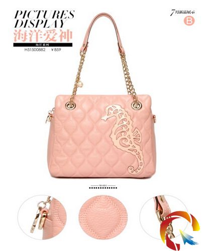 HONGU這款“海洋愛神”系列的包包,其設計靈感來自于小海馬,配用粉紅色的皮料。它就是一個來自深海的精靈,陪伴著你,傾聽你的訴說,分擔你的煩惱。她的存在,包容了你的瑣碎,保守著你的秘密。正是因為有她,你才感到前所未有的安全感和存在感。