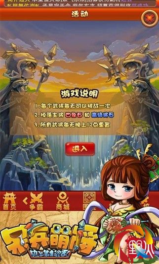 呆兵萌將,以快樂游戲為宗旨,讓那些坑爹游戲見鬼去吧。只要登陸游戲,就可獲得極品紫色武將“曹操”的封印魂。連續登陸就可在坊市使用“曹操封印魂”兌換紫將“曹操”,獲得三國第一梟雄“曹操”。真正做到紫將人人有!