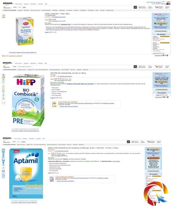 圖片來源:德國某大型購物網站中某款有機嬰幼兒奶粉頁面截圖
