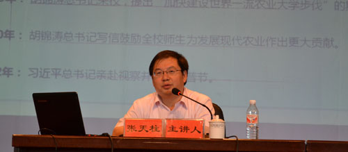 “必須要用現代物質條件裝備農業,用現代科學技術裝備農業”。張教授在談到如何發展現代農業特別強調,走現代農業化之路,既需要政府的大力支持,加快農業結構戰略性調整,同時又要加快農業科技創新,用現代科技加強現代農業裝備。