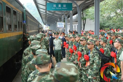 9月5日10時,由凱里火車站發至貴陽的5639次旅客列車徐徐啟動,1000多名新兵從凱里火車站出發奔赴各地。