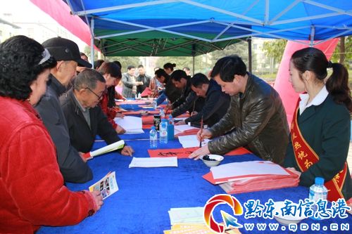 2月4日,岑鞏縣城正逢趕集,四鄰八鄉的群眾潮水般涌來,打工的農民工回鄉過年了。早上九點鐘后,往日冷清的街道異常熱鬧,心連心超市街頭,水泄不通。該縣郵政局、書法家協會“送歡樂下基層”活動在這里開展,給當地群眾“送藝術,送文化”。