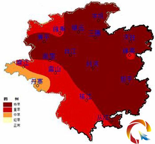 截止8月11日氣象干旱監測,我州岑鞏、鎮遠、黃平、三穗、臺江、劍河、黎平、天柱8縣為特重級氣象干旱,占全省特重旱縣(市)的25.8 %;凱里、施秉、錦屏、雷山、榕江、從江、麻江7縣(市)為重級氣象干旱,占全省重旱縣(市)的20%;丹寨為中級氣象干旱。
