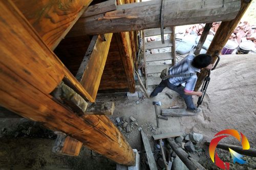 而他的這項技藝,校正、抬升一棟木房僅一個人花上兩三天功夫就能完成,抬升高度最高可達(dá)三米,收費(fèi)幾百元至千元不等;而移動一棟木房,視移動的距離遠(yuǎn)近來確定工期,一般幾米之內(nèi)也就兩三天功夫,耗人工數(shù)只要三四人,收費(fèi)最多二千元。