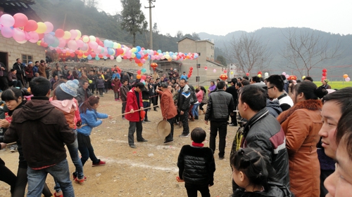 在岑鞏縣城開電腦公司的何洪本網上邀約遠在蘇州開美容美發店的鄰里鄉親何進,今年利用回到老家岑鞏縣龍田鎮都樹村過年的機會,出資出力協助老家村民自導自演了一臺山寨版“過年七天樂”活動,受到當地群眾熱烈歡迎。從大年初一至正月初六,活動內容被擠得滿滿的,村民充當活動主角,盡情分享節日文化娛樂大餐。