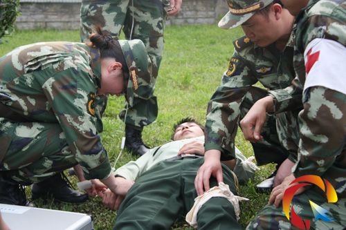 “顱內出血,多處開放性骨折!年齡76歲,病人休克!準備2000mlB型血,立即手術!”接到急救信息后,醫護人員迅速將老人送進野戰手術方艙,12名外科、內科、麻醉科專家組成的前線醫療組在近300平方米的最新軍用野戰方艙醫院內立即進行會診并迅速展開急救。這是武警貴州總隊醫院針對四川雅安發生7.0級地震開展的一次災害緊急救援實兵演練。