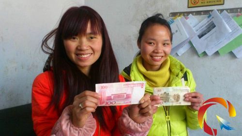 三都縣三洞鄉(xiāng)的韋明笑、韋勤變姐妹倆各領(lǐng)到了八十元的車費補貼