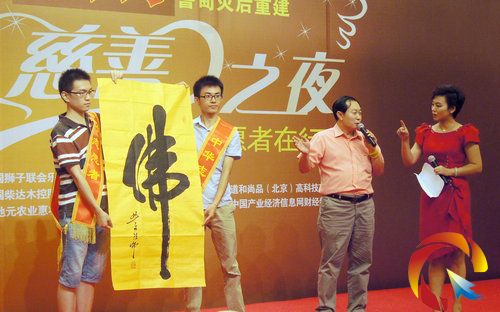 活動(dòng)現(xiàn)場(chǎng),當(dāng)全總文工團(tuán)著名歌唱家、國家一級(jí)演員劉思峰演唱“感謝你”和“國富民強(qiáng)”時(shí),受到全場(chǎng)觀眾一次又一次的掌聲;當(dāng)著名軍旅歌唱家烏蘭托婭演唱“我愛你中國”把晚會(huì)推向第一階段的高潮;當(dāng)北京心靈呼喚殘疾人藝術(shù)團(tuán)小龍女組合傾情演繹“我的未來不是夢(mèng)”把現(xiàn)場(chǎng)觀眾似乎帶到了災(zāi)區(qū)現(xiàn)場(chǎng);當(dāng)著名歌唱家、二炮文工團(tuán)金波從考試現(xiàn)場(chǎng)趕到慈善晚會(huì)現(xiàn)場(chǎng)時(shí),這份感到已經(jīng)足以讓大家為之感動(dòng),中央電視臺(tái)主持人劉瑋介紹金波為公益事業(yè)多次受到黨和國家領(lǐng)導(dǎo)接見時(shí),大家已經(jīng)為他鼓起了掌聲,本來金波的歌曲是放在晚會(huì)最后,由于他還要參加另一個(gè)節(jié)目錄制,特地把的金典曲目“有事你就說”和“常來常往”調(diào)換到前面,金波演唱的環(huán)節(jié),他走到慈善人士中間和大家一一握手,很多人與他握手合影圍的水泄不通!掌聲和吶喊聲將整場(chǎng)晚會(huì)推向了高潮。在隨后的晚宴期間,武警文工團(tuán)青年歌手肖爽也為大家?guī)聿簧倬实墓?jié)目。