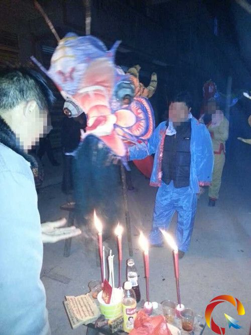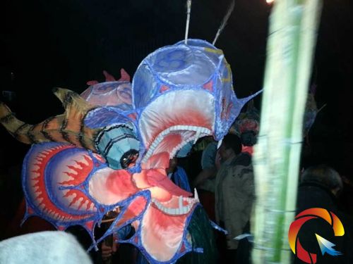 劍河縣柳川鎮的舞龍隊伍由當地村民自發組織,舞龍用竹篾和宣紙制成,依然采用最原始的制作方式,并且在竹筐體內點上蠟燭等照明的材料,讓龍整個身體發光。龍頭的制作非常精美細致,與龍身相接的部分用一條紅布連接,相傳小孩要在龍身下多穿越幾次,一年的好運就會滿滿;龍須最具紀念意義,如果扯下一把龍須,帶在手腕上,就會身體健康,心想事成。
