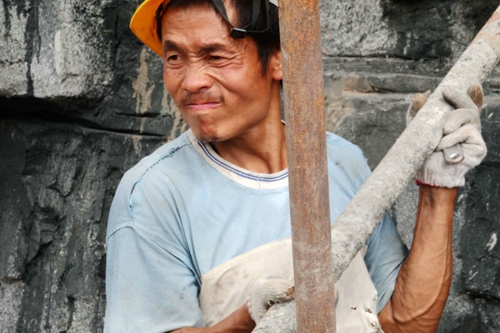 劉三妹是來自四川的一位打混凝土工,她的工作主要是把混凝土磨平,并附上薄膜防止日曬。為了防止烈日直曬,她在安全帽下加了一個太陽帽,看到筆者拍照,她燦爛地笑起來,并用濃重的四川口音話和筆者攀談著。“打混凝土很辛苦,但是我喜歡,因為可以賺到更多的錢哦。”