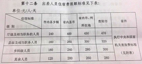 對于出差住宿費,管理辦法規定,出差人員住宿費用應當在職務級別對應的出差目的地住宿費標準限額內,廳級及相當職務人員住單間或標準間,縣級以下人員住標準間。