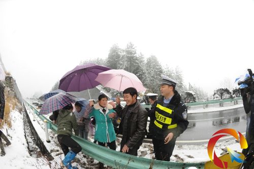 經過了解,得知這15名村民是麻江縣下司鎮長江村人,他們是急著趕到麻江縣杏山鎮六堡村親戚家吃喜酒。不料,一早起來大雪已封山,村里出入的路被厚厚的冰雪覆蓋,車輛無法出入。15人就只有出此下策,冒險爬上高速路,從高速路上抄近道趕往六堡村。“親戚的喜酒耽擱不得,要不會生氣的。”一名村民說。
