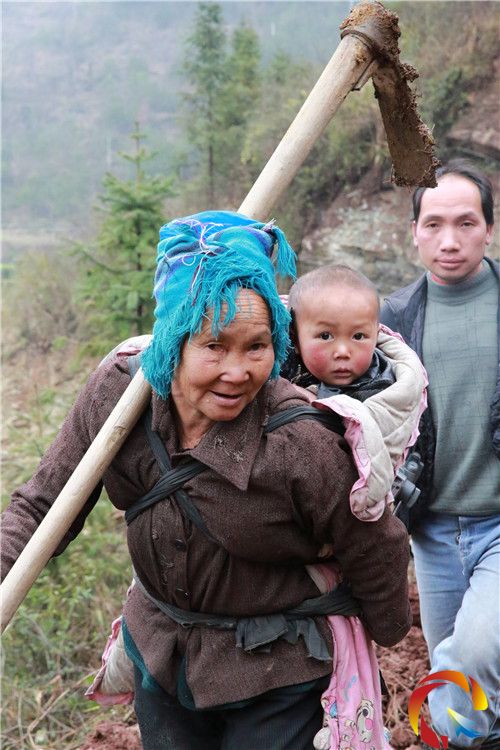 談起背上的孩子,老人說,這是她的小孫孫,才幾歲,他的父母均已外出打工。老人完全可以將他放在地面上,任其自由活動。“不行,小孩調皮,不背著,他到處亂走,出了事沒法交差。”老人說。
