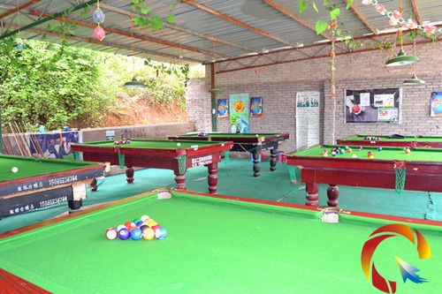 其實說是臺球館,著實有點“抬舉”它。周勇的臺球館沒有精致的裝潢,沒有柔和的燈光,只是由一個簡易棚搭建,棚子下面躺著7張桌球臺,還有一只看家的大黃狗,但生意卻很火熱,即使臨近考試也會有臺球愛好者來這兒打上幾桿。