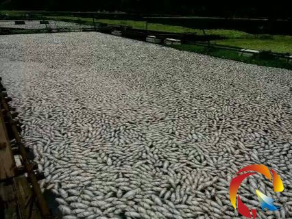 網友供圖顯示,大量有些發黃的水白菜和綠色的水葫蘆出現在河面上,有的河段被全覆蓋,看不到水面,在不了解情況的人看來,這不是河道,而是一馬平川的平原或者綠洲。大量網箱里的魚翻白肚漂浮在水面上,密密麻麻的,觸目驚心。