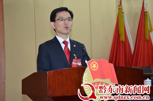 羅祖新在大會上作了題為《勇?lián)鷷r代使命,創(chuàng)業(yè)創(chuàng)新創(chuàng)優(yōu),在實現(xiàn)黔東南中國夢的偉大實踐中譜寫壯麗的青春篇章》的工作報告。