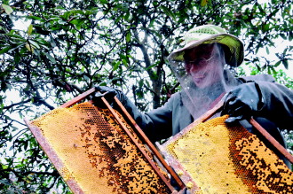 天柱縣坌處鎮地沖村依托生態優勢,大力發展蜜蜂養殖產業,目前養蜂的占總全村農戶的40%,規模蜂農有30余戶,共480箱,年產蜂蜜3000公斤,年產值18萬元。圖為蜜蜂“土專家”周禮昌笑瞇瞇地在采割蜂蜜。
