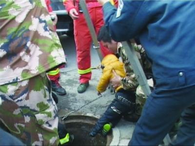 下井救人的重任,交給了石門坎消防中隊最瘦的隊員潘楓。潘楓下井后發現井內全是污水,且漂浮著不少垃圾。折騰了10分鐘后,潘楓示意戰友將他拉出井。