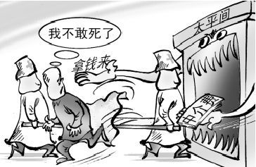 太平間是死者火化入土前的必經之地,記者采訪發現,一些醫院和殯儀館的太平間卻發生異化,從寧靜之地變質為“扒活人一層皮,發死人身上財”的圈錢宰人之地。“要看最后一眼,先交2萬元押金”、“不買貴的,就是不孝”,種種亂象背后,凸顯政府的監管漏洞和基本公共服務缺位。據新華社電