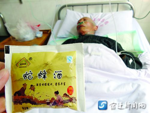 24日,家住宿遷生態化工科技產業園苗莊村的88歲老人袁德貴,像往常一樣獨自到街市上買菜。此時街頭一名操外地口音的男子,正打著“包治百病”旗號,高聲為自己的蛇蜂酒吆喝叫賣。袁德貴在攤販的熱情邀請下免費試喝了一小袋,結果不出五分鐘,他就當場倒地昏迷不醒,后經醫院及時搶救才保住性命。