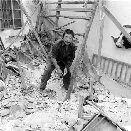 潘秀珺什么也顧不上,下樓就去救人。跌跌撞撞爬進廢墟中的她發現王財木老人正靠著墻坐在床上,胸部以下已經被瓦礫完全壓住了,她慌忙用手去扒老人身上的泥塊土渣,可是老人卻連說:“快點挖他娘,快點挖他娘!”