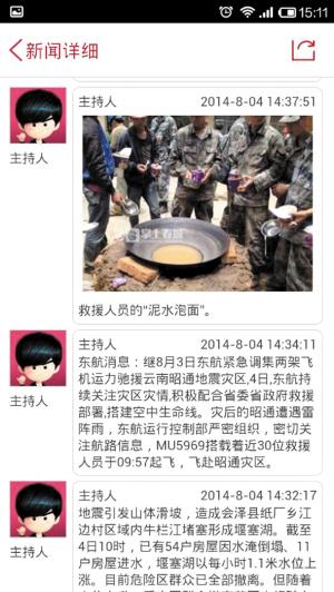 “從昨天到今天陸續(xù)有100多人給我發(fā)過現(xiàn)場照片。”合文薄回憶。從地震發(fā)生到4日18時(shí),掌上春城直播間一直開啟,不間斷發(fā)布一線相關(guān)新聞250條,現(xiàn)場照片150余幅,其中最早的一組圖片被騰訊迅速截取,并被新華社、新浪微博等媒體大量引用。這些照片能第一時(shí)間和大家見面,正是因?yàn)橛羞@100多位普通群眾臨時(shí)組建的“特派記者隊(duì)”,另一邊,心系現(xiàn)場的讀者也通過掌上春城直播間發(fā)布的《血站告急!到哪獻(xiàn)血?》、《魯?shù)榈秸鹬械缆匪健返认鑼?shí)信息,了解災(zāi)區(qū)最新情況,理性參與救援。