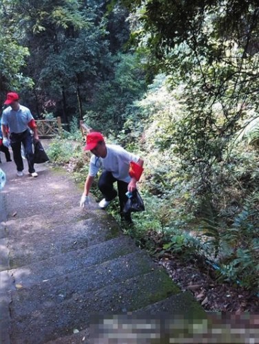 湖南都市頻道記者@我是黃聰爆料,湖南省委常委、長沙市委書記易煉紅清晨在掃馬路。照片中的易煉紅戴著白手套,穿著雨靴,與眾多工作人員一起拿著掃帚清掃路面。