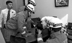 10月13日下午兩點多,北京消防119指揮中心接報警稱,朝陽區光華路一銀行內,一女子頭發被卡住,請求救援。紅廟中隊立即出動一部消防車、7名官兵趕赴現場。消防員向北京晨報(微博)記者回憶,他們抵達現場后,發現被困者是一披著過肩長發的年輕女子,而“咬”住她頭發的竟然是一部點鈔機,“銀行人員介紹,女子代表單位來銀行對賬,點鈔機在工作時,她的頭發不慎卷了進去,周圍人七手八腳也沒弄出來,就打了119求助。”