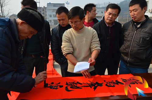 1月25日上午,鎮遠縣青溪鎮開展“迎新春 送春聯”文化進村活動,93歲高齡的退休教師楊榮華,提著“文房四寶”興致勃勃的來到政府參與書寫春聯。書寫時,精神抖擻,聚精會神,下筆有力,揮灑自如。所書作品,被圍觀者一搶而空。大家贊口不絕,真是“老當益壯、寶刀未老”。(羅尚賢)