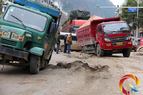 現(xiàn)場指揮救援疏導的鎮(zhèn)遠縣交警大隊楊副大隊長介紹:出事地點是交通主干道,路面經過挖掘回填不久,當時正值交通高峰時期,大隊5名交警在該路段執(zhí)勤保暢。一輛拉載滿滿一車水泥磚的拖拉機行徑加油站門口一處軟泥路面時,車輛左后輪陷入泥中,動彈不得。正當交警準備施救時,一輛更大的拉載滿車沙子的自卸貨車在準備繞過事故車輛時,車輛右后輪突然陷入路面,險些翻覆。出事兩車占據(jù)了大半個路面,導致該路段暫時出現(xiàn)交通擁堵。