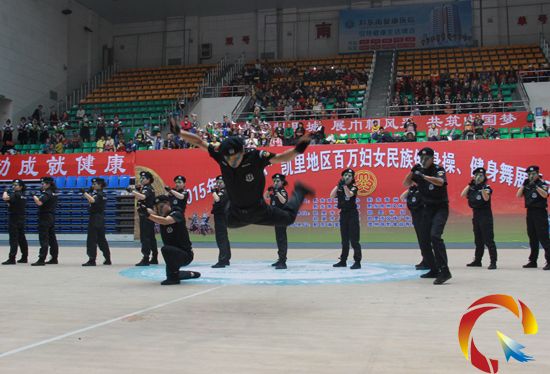 本網訊 為積極響應“舞動凱里城 展巾幗風采 共筑中國夢”---2015“愛康杯”凱里地區百萬婦女民族健身操、健身舞展示大賽。凱里公安精心挑選13名警花和6名帥警參加此次大賽,通過三天激烈角逐,凱里公安代表隊摘取桂冠。