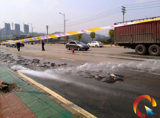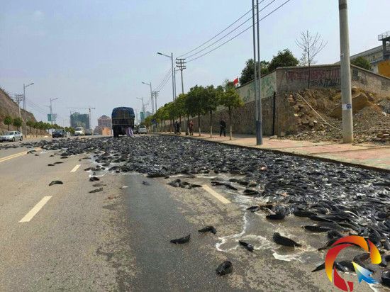 據崔師傅介紹,灑落的魚為胡子魚,共有上萬斤,是從廣西運到凱里批發賣,進價為9萬多元。