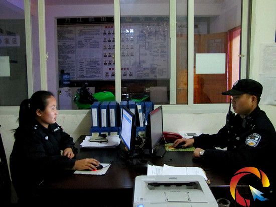 1:20時,雷山縣城丹江鎮公安派出所燈火通明,民警們接打電話、出入忙碌著。圖為接處警辦公室民警龍宗基、吳謙在堅守崗位。