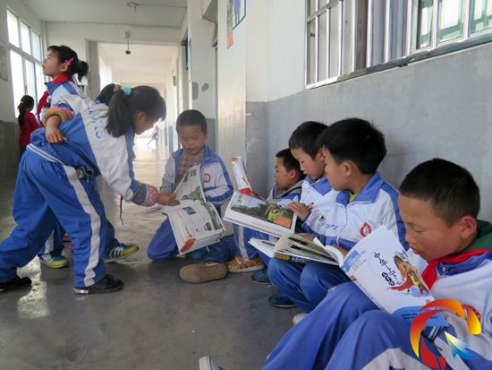 4月13日,麻江縣隆昌小學走廊圖書角正式開放后,學生們高興地來到小書架前尋找自己喜歡的課外讀物。