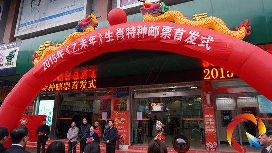 黔東南州郵政管理局局長王新華、黔東南州郵政分公司馬軍總經(jīng)理共同為“羊年郵票”首發(fā)式揭牌。