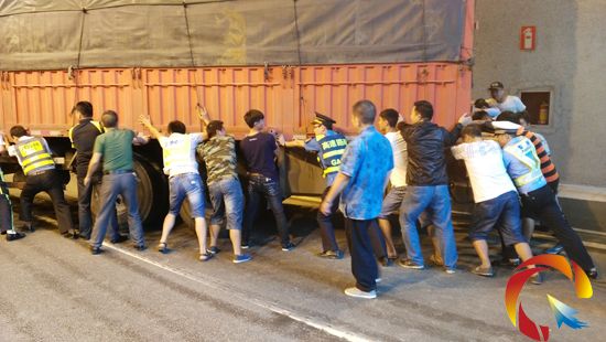 本網訊 6月10日下午,廈蓉高速上行線1215KM(歸仰二號隧道)發生一起交通事故,一輛紅色大貨車因避讓警示標志不及,甩頭重重撞上隧道內堡坎和隧道壁,車身則45度轉彎橫跨在超車道和行車道上,無法動彈。在救援車輛暫時無法救援時,圍觀群眾想出了一個辦法,推開大貨車讓出救援通道,于是,呼哧呼哧眾人充當了一回“大力士”,在充滿正能量的“一二三”的口號中大家齊發力,雖然勁往一處使后,但由于貨車車身太重,一番推車下來依然紋絲不動,于是工作人員重新制定了救援方案,經過一個多小時的努力,橫跨在隧道里的事故貨車終于被救援車輛拖走了,道路得以恢復暢通。(楊艷陽)