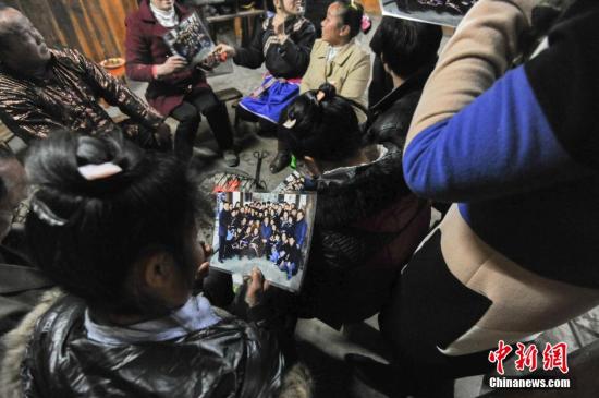 圖為蒲洞村民在觀看相片。 中新社發 賀俊怡 攝