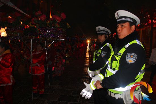 鎮(zhèn)遠交警在維護龍燈出游的安全